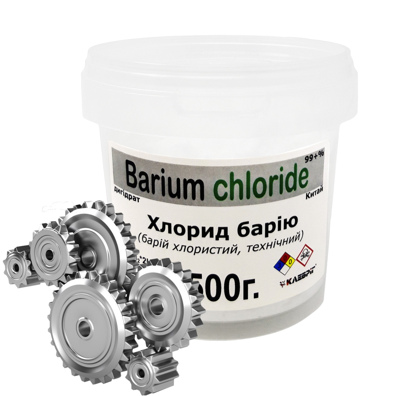 Барій хлористий - неорганічна речовина, яку можна розглядати як сіль соляної кислоти. З погляду хімії – бінарне з'єднання. Синонім назви – хлорид барію. Формула BaCl2. Отримують реактив термохімічним способом концентрату природного бариту.